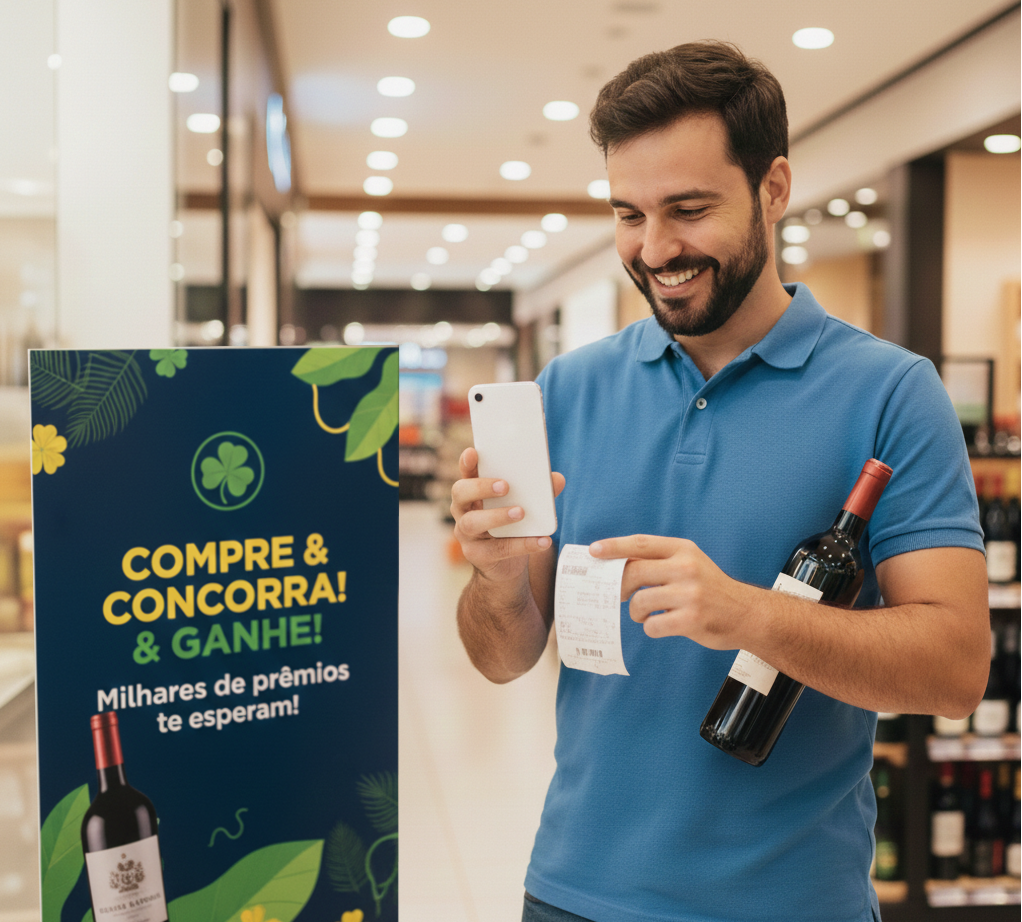 O sistema analisa e valida as notas fiscais, gerando números da sorte e vales-brinde.