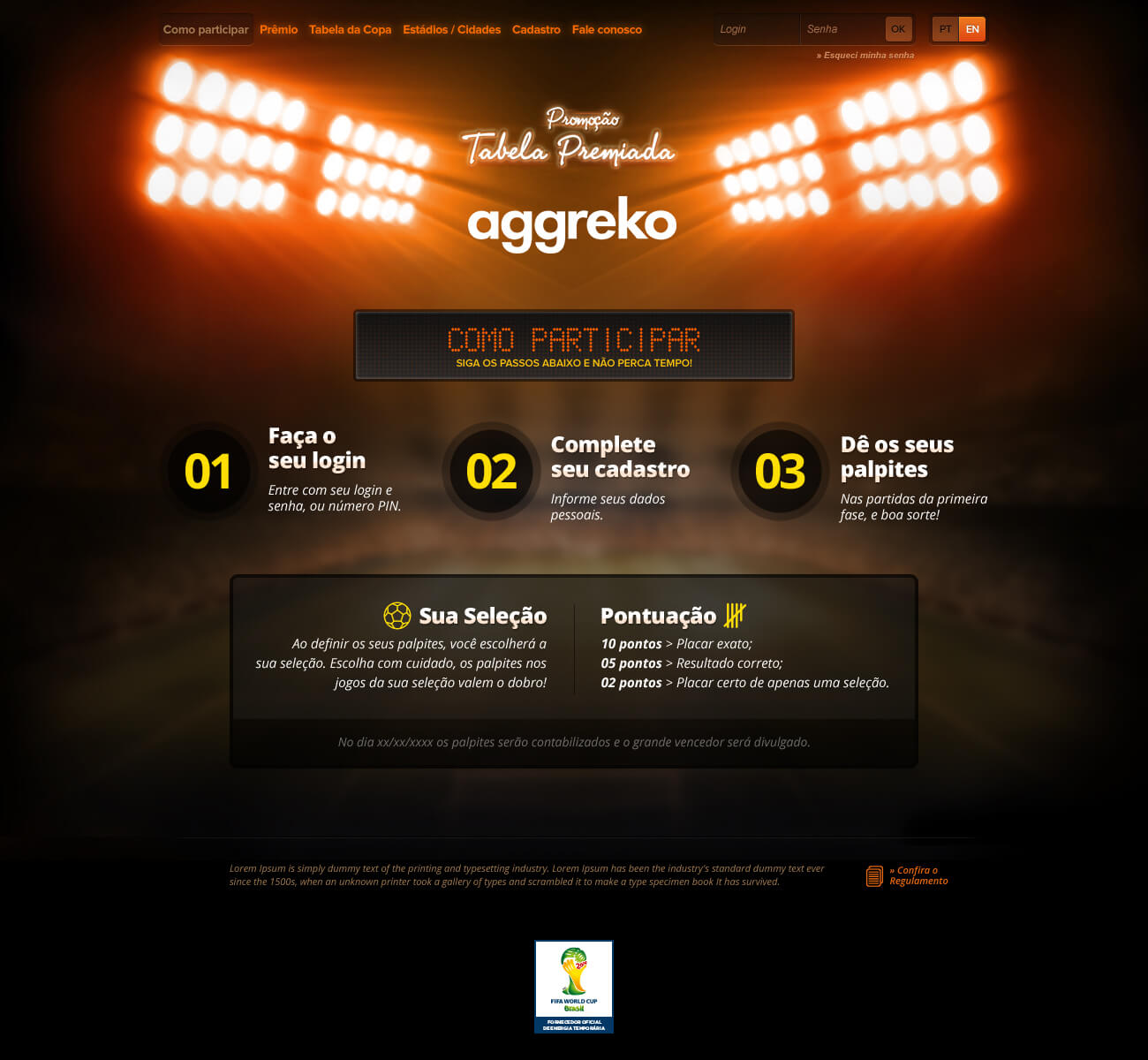 Para conectar esse público corporativo à paixão nacional, o Promi foi usado para a “Promoção Tabela Premiada Aggreko“. A mecânica escolhida foi o tradicional “Bolão”, mas com uma execução profissional e automatizada.